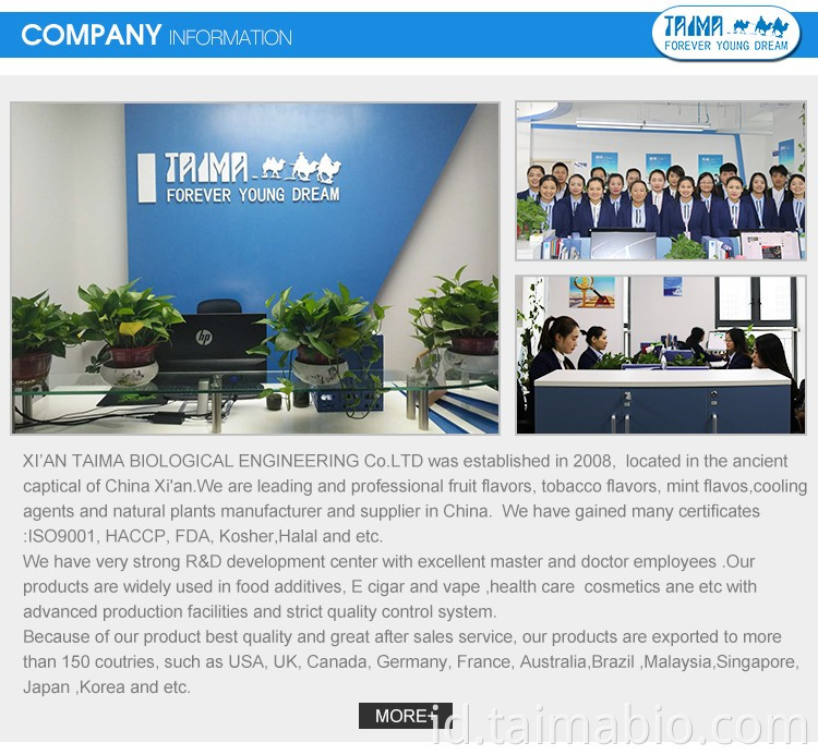 Xi'an Taima Produce Special Vape Bahan Baku Falvor dan Agen Pendingin (WS23/WS3/WS5/WS27 ), agen pendingin WS27 akan digunakan untuk vape e cairan, permen, kosmetik, makanan dll.