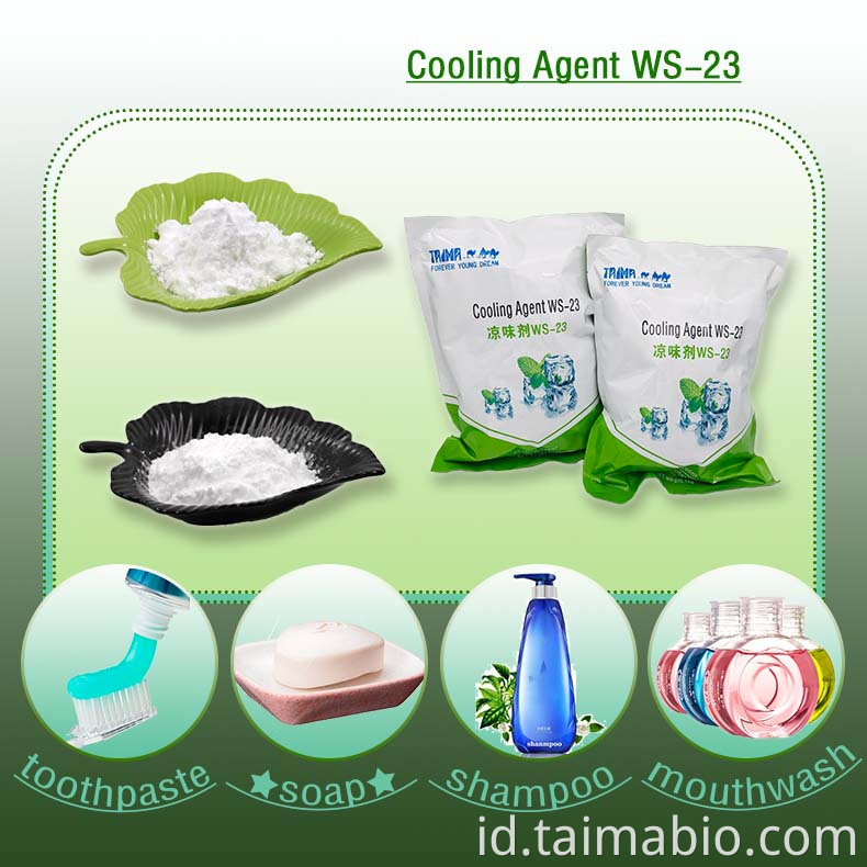 3. Dosis rendah; Untuk produk jadi 1kg, selalu hanya membutuhkan 30mg ~ 100mg WS-23 untuk mencapai efek pendinginan.